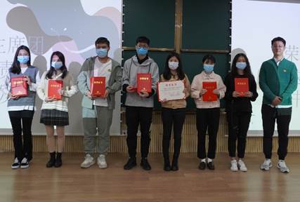 马骁为上一届主席团成员及总负责人颁发荣誉证书,并为新一届主席团成员及负责人颁发聘书。荣誉总负责人伍文龙为英文团委学生会各部门新任成员代表颁发工作证及工作手册。