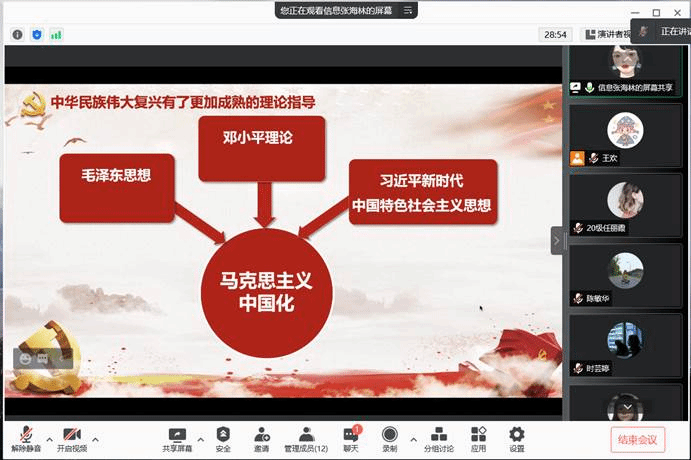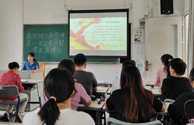 学校百年党史大学生宣讲团成员刘晓琪为工商管理第二学生党支部、市场营销第一学生党支部以及市场营销第二学生党支部带来以“中华民族伟大复兴进程不可逆转”为主题的宣讲,从经济建设及精神文明建设两个方面阐述实现中华民族伟大复兴为何已经进入了不可逆转的进程,并发出号召,呼吁青年党员一起践行“请党放心、强国有我”的青春誓言。