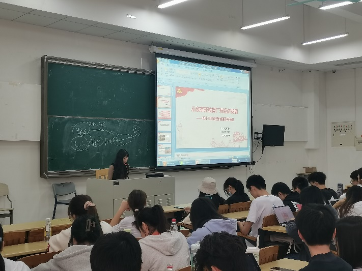 2021年11月12日,学校百年党史宣讲团成员、经贸学院研究生李林玲以“从改革开放看广东经济的发展——四十三年奋进的回顾和展望”为主题开展了大学生党史宣讲会,经贸学院200多名学生参加学习。