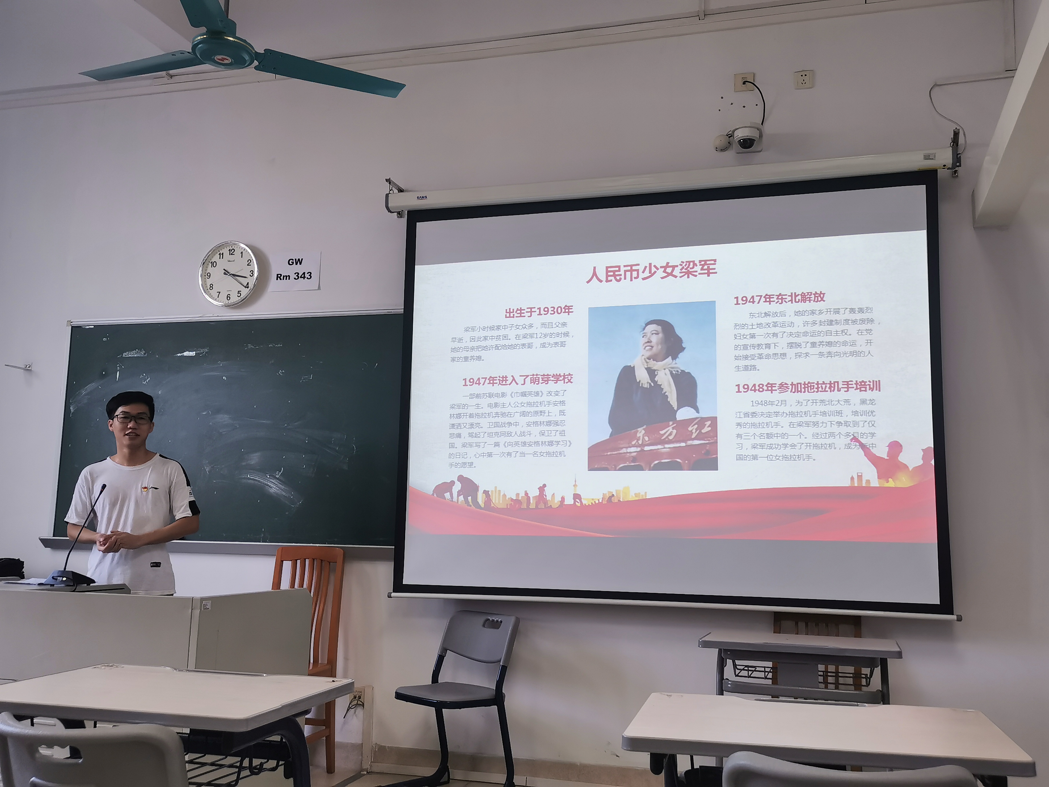 2021年11月18日,学校百年党史宣讲团第七组成员、商学院詹森恒同学以“讲好劳模故事,弘扬劳模精神”为主题,在艺术楼B304教室开展了百年党史大学生宣讲会,艺术学院30名学生参加学习。
