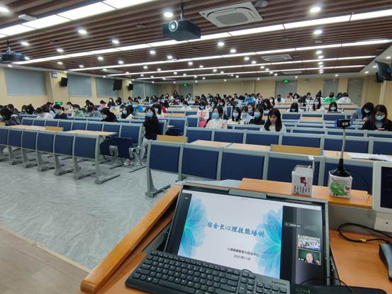 为增强本科生对流行病、传染病和急救技巧的认识,促进学生身心健康发展,进一步做好学生身心健康工作,建立健全学校、院系、班级、宿舍“四级”预警防控体系,营造良好的宿舍学习生活环境,2021年11月30日晚,国际商务英语学院在北校区第一教学楼109室举办了宿舍长、心理(生心)委员专题培训会。本次培训邀请了校门诊部医生洪锦兰以及学校心理健康教育与咨询中心副主任商英学院院长助理阎茹分别开展“防疫及急救知识培训”“宿舍心理健康教育”主题讲座。学院辅导员、心理援助队负责老师刘颖,学院实习辅导员老师王施然以及学院各本科年级近200名宿舍长和心理(生心)委员参与了本次培训。会议由2019级心理/宿舍级长阮爱婷同学主持。