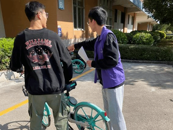 为弘扬党的光荣传统、优良作风,强化公仆意识、为民情怀,宣扬志愿服务精神,2021年12月10日,信息学院数据挖掘实验室学生党支部组织了“我为群众办实事——校园共享单文明停放”志愿服务活动。通过发放共享单车文明停放宣传单、整理共享单车停放等行动,协助解决共享单车随意占道、乱停乱放等问题,倡导学生们自觉以良好有秩序的方式使用共享单车。