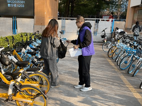 本次志愿活动分早、中、晚三班进行。党员志愿者们分别于教学区A栋、实验楼、图书馆门前,学术报告大厅、艺术学院门口以及生活区第二饭堂等共享单车集中的区域,分组有序展开活动。对于共享单车占道、乱停乱放等阻碍行人、机动车通行的问题,志愿者亲手将单车摆放整齐,方便行人出行、减少道路拥挤、维护校园整洁。同时,对于部分共享单车乱停放的行为,志愿者们及时劝阻,并发放自制宣传单,引导学生们在方便自己的同时也心系他人,用实际行动自觉维护校园整洁。