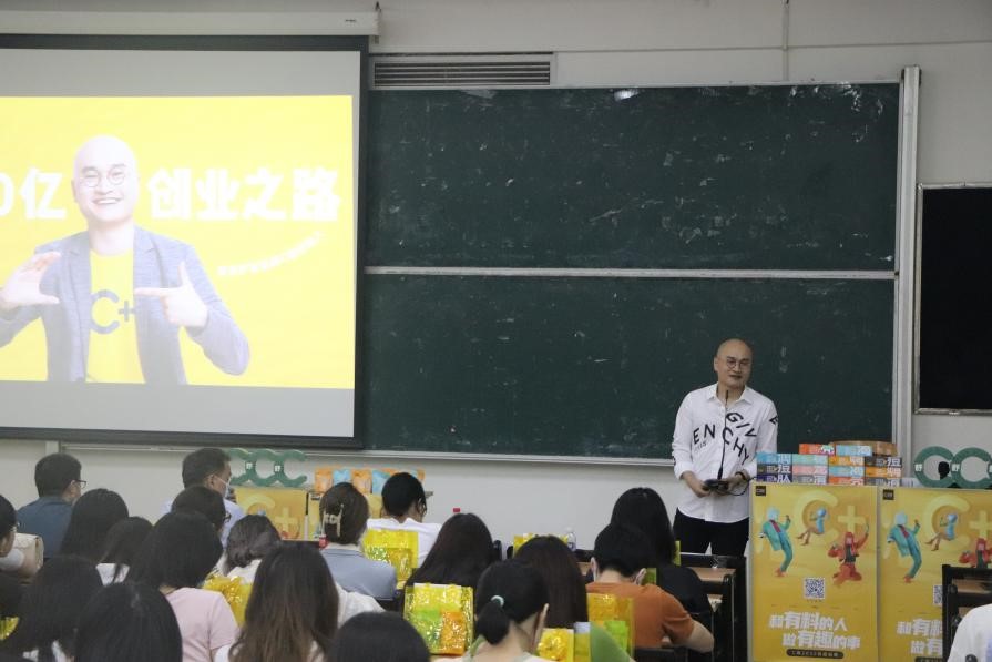 肖荣燊分享了自己的就业、创业经历与感悟。他认为,行业感知力和视野能力是毕业生必须具备的素质,他鼓励同学们勇于尝试,丰富对社会的认知,拓宽自己的眼界。肖荣燊提到,目前许多行业都面临着一定挑战,相比于具有多年工作经验、思维模式较固化的员工,企业更需要具有持续发展和创新发展能力的员工为企业的发展注入新鲜活力。他表示,希望自己的创业经历分享能给在校学生带来启发,期待能在母校找到合适的、优秀的毕业生加入他们的团队。