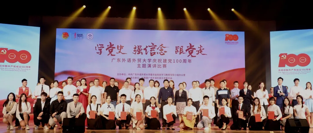 10月15日晚上7点,“学党史、强信念、跟党走”灯塔学习会——广东外语外贸大学庆祝建党100周年主题演讲比赛在大会堂如期进行。12名来自新闻与传播学院播音主持专业的朋辈导师对选手进行了细心的指导,助力建党百年演讲比赛。