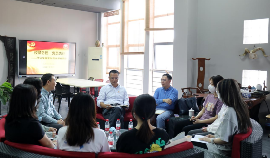 4月6日下午,艺术学院学生党支部在艺术楼B208召开“疫情防控 党员先行”——艺术学院学生党支部座谈会。校党委常委、副校长刘海春,艺术学院党总支书记卢海清,辅导员、学生党支部书记谭珺如以及学生党员、发展对象代表参加了会议。会议由艺术学院党总支副书记连勇主持。