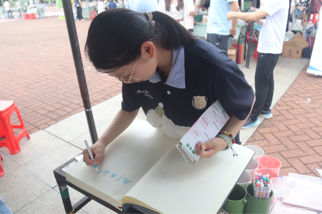 活动中的劳动实践、艺术创作、校史竞答等多元任务,全面考察参与者的实践能力与文化素养。在劳动与艺术融合任务中,参与者于绿植修剪、土壤松土等劳动实践中展现动手能力,在明德书院透明膜画作创作中发挥艺术创意,参与学生用荧光笔书写祝福、用线条描绘语心湖轮廓,作品兼具艺术性与校园特色
