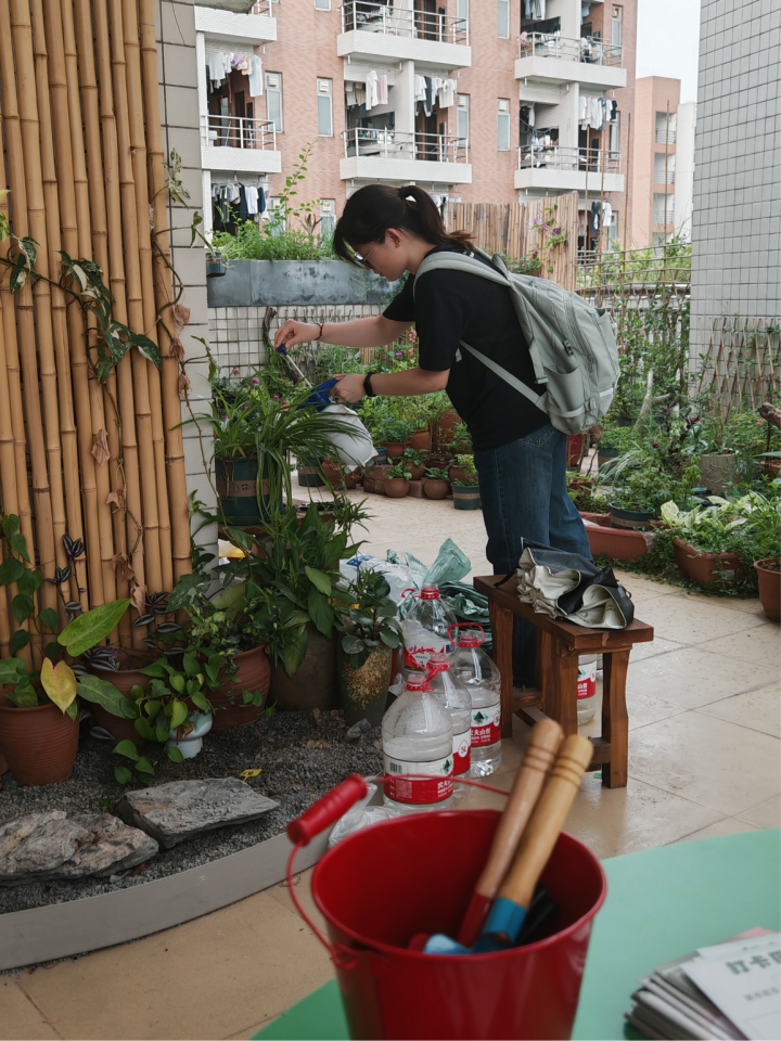 参与学生修剪绿植