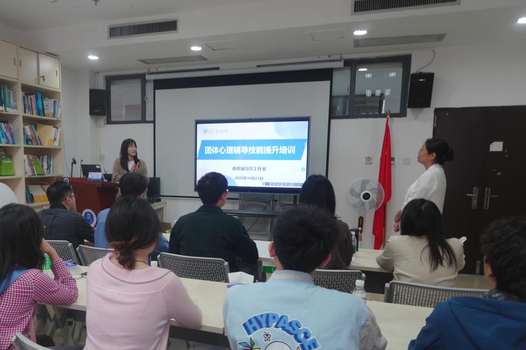 10月22日下午,春晖辅导员工作室联合商学院二级心理辅导站在大学城校区院系楼366会议室开展团体心理辅导技能提升培训。本次培训会邀请学校心理健康教育与咨询中心副主任阎茹担任主讲嘉宾,工作室成员及商学院二级心理辅导站“追光商苑”朋辈咨询师团队全程参与,活动由工作室负责人秦雨主持。