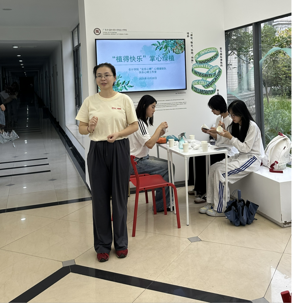活动伊始,快乐心晴工作室主持人、“会乐心晴”心理援助队指导老师周雅颂主持了本次活动,寄语同学们在与多肉的相处中放松身心、培养耐心,在照料植物的过程中体悟专注与陪伴的力量。