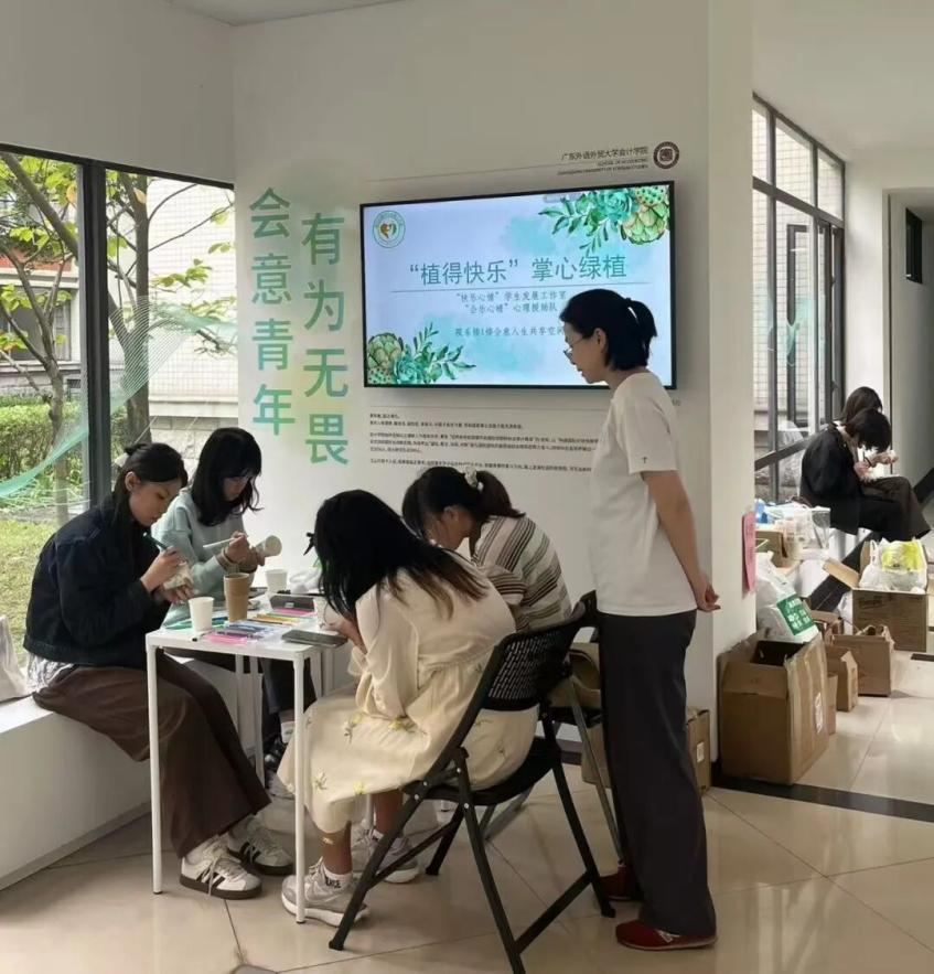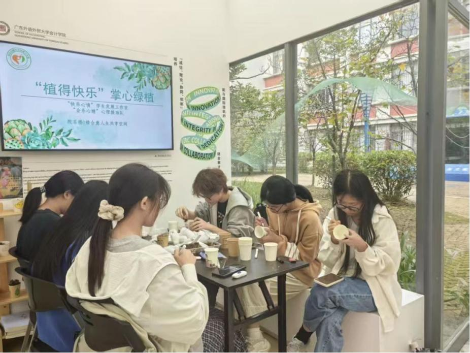 11月13日下午,“快乐心晴”学生发展工作室和会计学院会乐心晴心理援助队举办了第二期“植得快乐”掌心绿植活动。活动吸引了100多名同学参与,完成了200余份绿植作品。