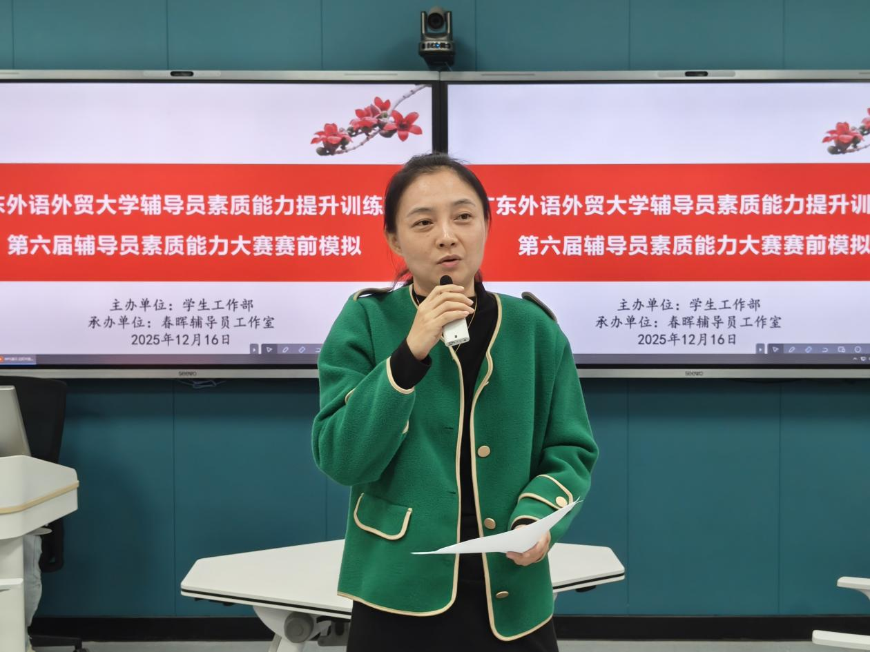 为深入推进我校辅导员队伍专业化职业化建设,实现以赛促建、以赛促练的目的,12月16日下午,辅导员成长计划第143讲暨素质能力大赛提升训练营在大学城校区教学楼G座211举办。训练营以案例研讨、谈心谈话模拟演练的方式进行,邀请广东高校辅导员年度人物、第八届省赛一等奖获得者暨南大学牛若曦与第十届省赛二等奖获得者广东工业大学何嘉欢受邀担任点评嘉宾。我校学生工作部副部长陈思,全体参赛辅导员参加活动。