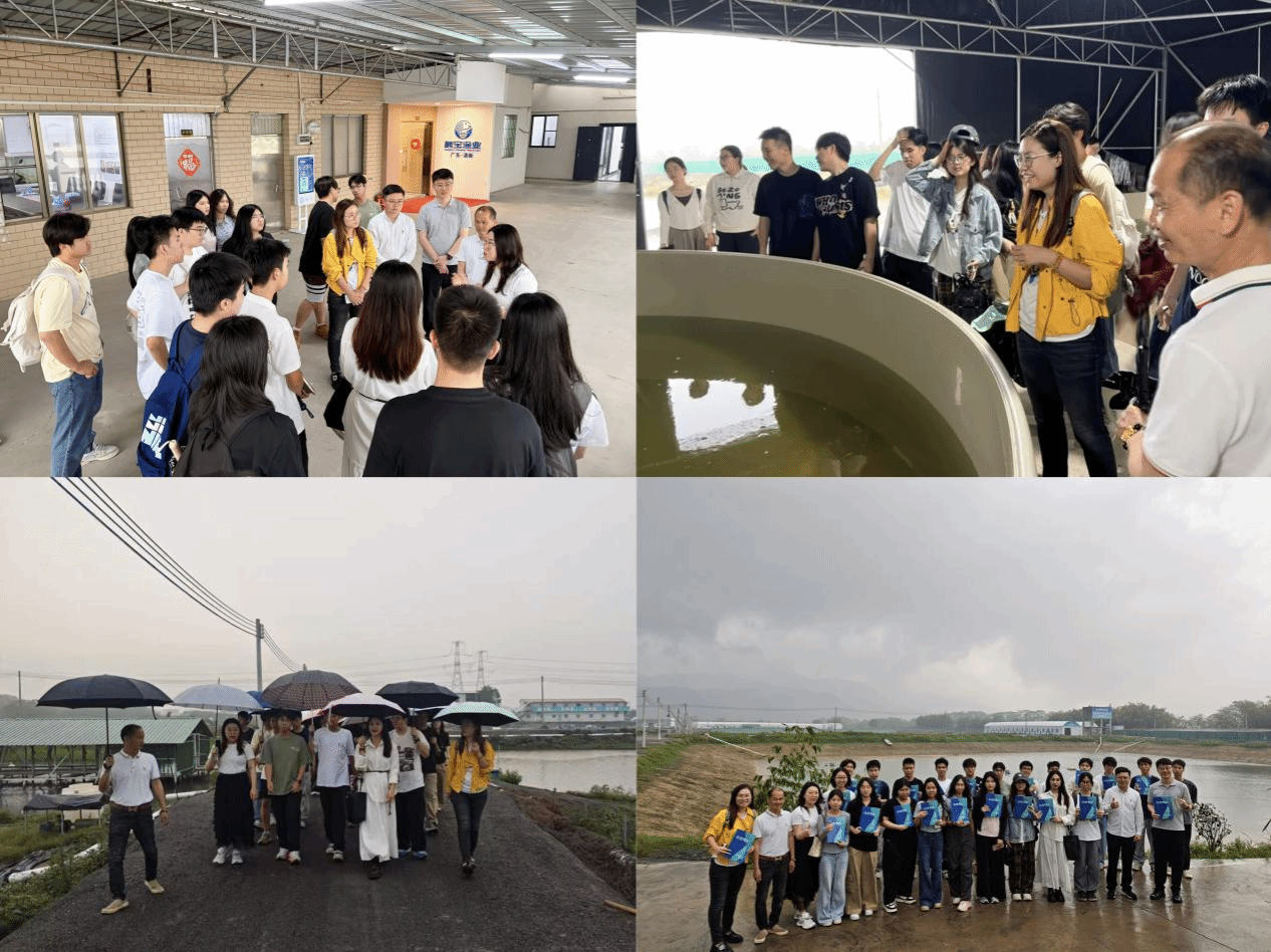 下午,师生前往广东鳜宝渔业有限公司桂花鱼种苗繁育养殖基地进行实地考察,依次走进鳜鱼苗种标粗车间与饵料驯化车间,近距离了解现代化水产养殖的全流程运作。基地负责人介绍,鳜鱼养殖对水质、水温及饵料转化率要求极高,饵料驯化技术是核心亮点,让鳜鱼从传统摄食活饵,逐步转变为食用人工配合饲料,不仅大幅降低饵料成本、减少病害风险,更有效提升养殖规模化、集约化水平。同学们在观察与交流中真切感受到科技赋能现代农业的强大力量,深刻认识技术创新对推动乡村特色产业发展、农业农村建设的深远价值。