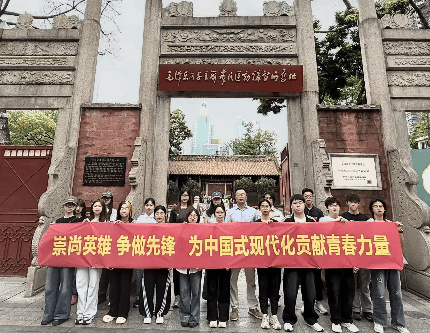 为缅怀革命先烈,传承红色基因,加强爱国主义教育,在清明节之际,“崇尚英雄 争做先锋”辅导员工作室主持人万东方老师带领学生前往毛泽东同志主办农民运动讲习所旧址纪念馆(以下简称“农讲所”)开展主题活动。